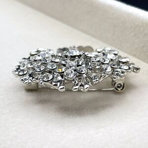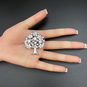Silver with White Diamond Crystal Blooming Tree Pin Back Brooch