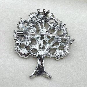 Silver Tone Blooming Tree Pin Back Brooch Embellished with White Diamond Crystals