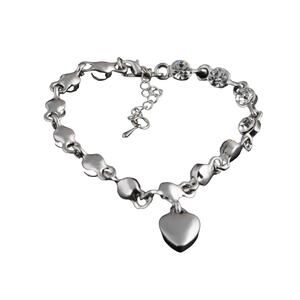 Add a little glimmer and dazzle to your wrist with this charming bracelet studded with blue rhinestones on silver chain and one dangling heart.