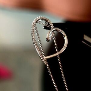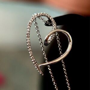 Sterling Silver 925 Pave Diamonds Heart Necklace.