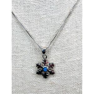 Silver 925 Simulated Fire Opal Snowflake 18" Necklace + Drop Earring Set Jewelry