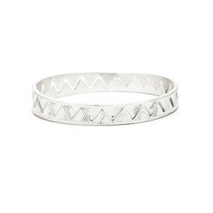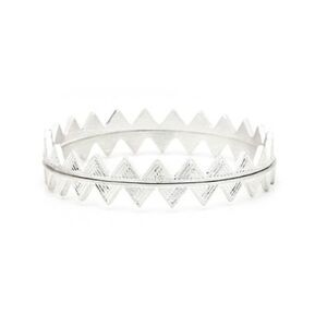 Frosted silver tone bangle set with 2 bangles that have triangular cut out edges.