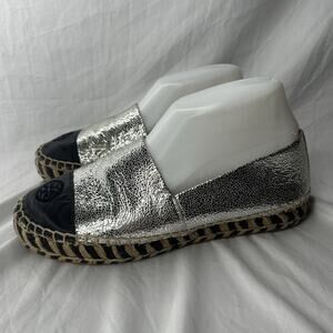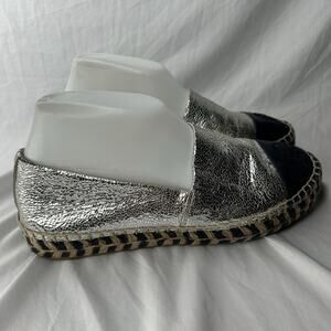 Silver/Black Cap Toe Flats BOUTIQUE Tory Burch Size 8