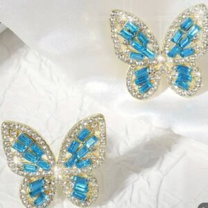 Silver Blue Butterfly Rhinestone Stud Earrings 🦋