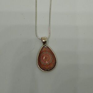 🦉Silver Bohemian Oval Glass Pendant Teardrop