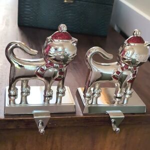 Silver Cat Stocking Holders with Red Glitter Accents Set of 2