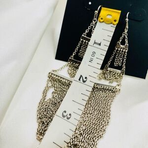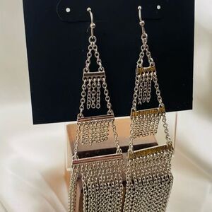 Elegant silver chain fringe earrings. Perfect for adding a touch of glamour. Stunning silver chain fringe dangle earrings, perfect for adding a touch of elegance to any outfit. These statement earrings feature a unique layered design with multiple strands of delicate chains creating a beautiful fringe effect. They are lightweight and comfortable to wear for extended periods. These earrings are brand new with tags (NWT).