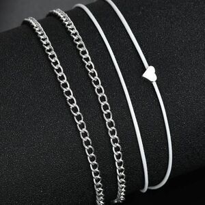 A great anklet wrap! White rope, silver chain with charming heart anklet set!