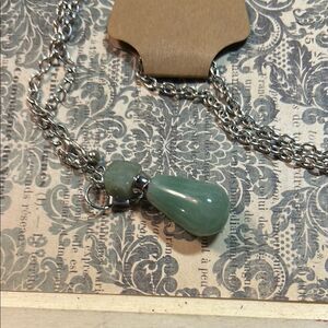 Elegant silver chain necklace featuring a green pendant. Perfect for any occasion. Approximately 19”. G138