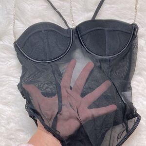 Silver Chain Strap Semi-sheer Mesh Bodysuit Lingerie Teddy