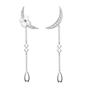 Silver Crescent Earrings Crystal Pearl Flower Dangle Asymmetrical Style Fine Jewelry