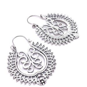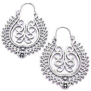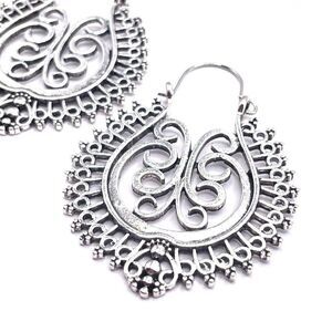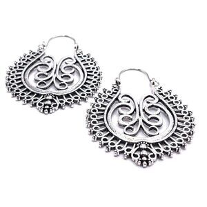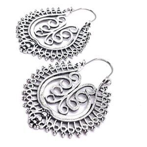 Brand New - Silver Intricately Detailed Bohemian Style Scroll Designed Dangling Drop Pinch Hinge Hook Earrings