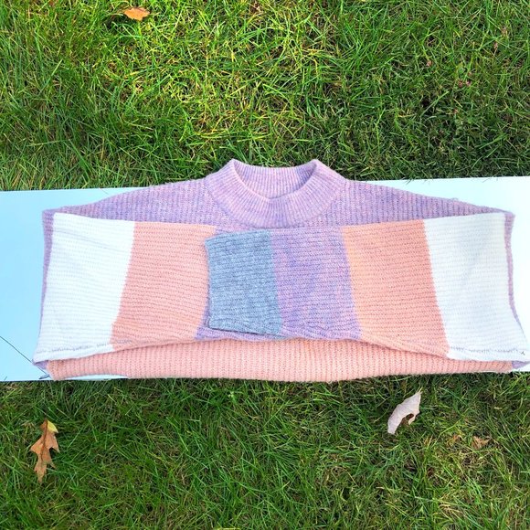 This fun pastel colored cropped sweater is perfect with any pair or jeans or your favorite sweatpants! Barely worn oversized style!