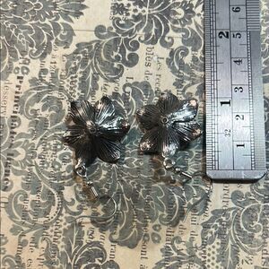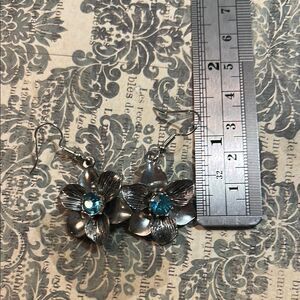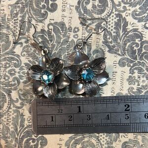 Elegant silver floral earrings featuring striking blue accents. Perfect for adding a touch of sophistication to any outfit. Taken from a broken necklace. G171
