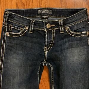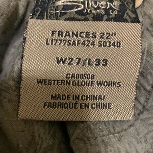 Silver Francis 22” Size W27/L33 Flare dark wash denim jeans. These jeans are like new condition and smoke free/pet free home