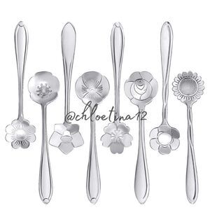 Silver Gold 8pcs Stainless Steel Flower Spoon Set