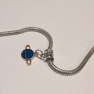 Silver Gold Blue Saturn Planet Enamel Dangle Charm for Pandora Style Bracelet