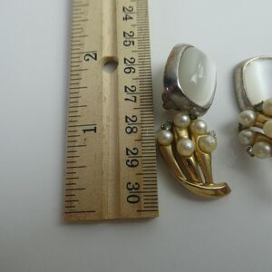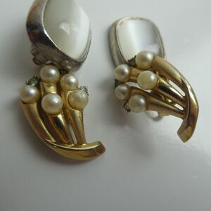 Each pair has a broken/missing back, please see photos. The gold tone pair are Crown Trifari.