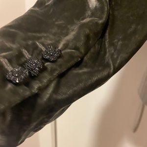 Italian made NEW size 46, (American 12) crushed rayon velvet blazer, has a luxurious sheen. The distressed nature of the fabric is its charm. Looks great with jeans.