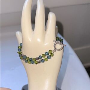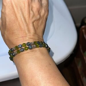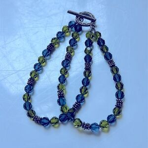 Silver, Green & Blue Faceted Plastic Beaded Two Strand Bracelet