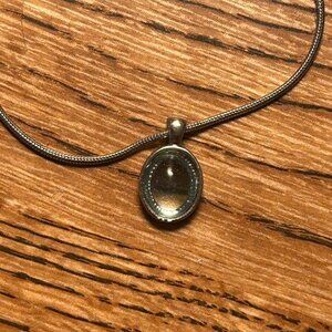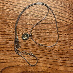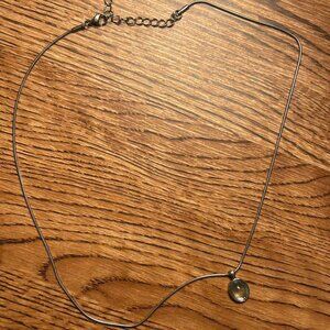 silver/gunmetal chained pendant necklace with a light blue cabochon faux gemstone