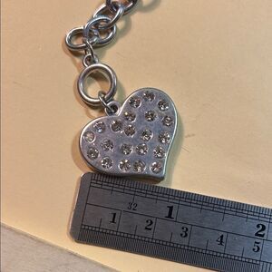 Elegant silver heart charm bracelet with sparkling accents. Perfect for adding a touch of glamour to any outfit.