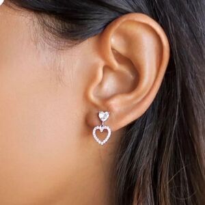 Add a touch of elegance with these stunning silver heart drop earrings. Perfect for any occasion.