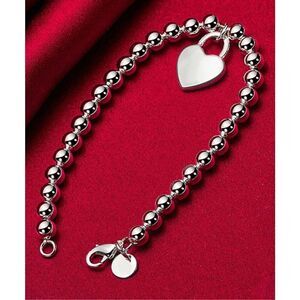 Beautiful sterling silver heart lock beaded bracelet that is just adorable. 8 inches long with lobster claw clasp. Sure to dress up any outfit.