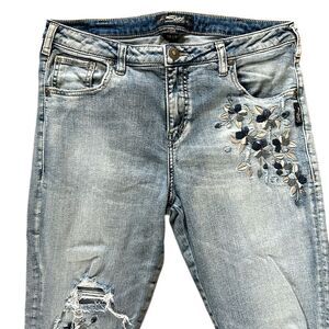 Silver Izzy Ankle Skinny Embroidered Lightwash Jeans