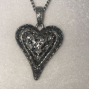 Silver Large Heart Necklace with Beautiful Silver Engraved Stones