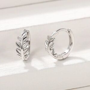 These classy silver earrings feature snap hoops and delicately carved leaves. The earrings are about half an inch tall. This simple face-framing accessory is the perfect addition to any outfit.
