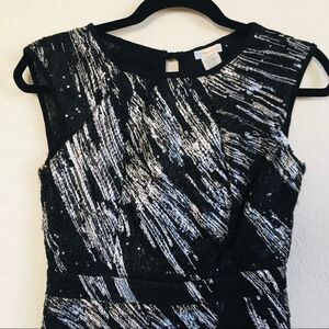 Silver Metallic Thread Sequin LBD Cocktail Dress Sz M NWT is brand new with tags. The classic little black dress LBD has been updated with a spun silver metallic thread and sequin textured weave (see photos for details).