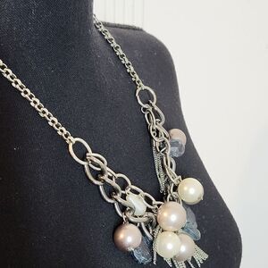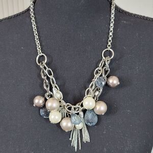 Beautiful silver necklace with two rows of multi - colored stones. Adjustable clasp for sizing. Approx. length 25"