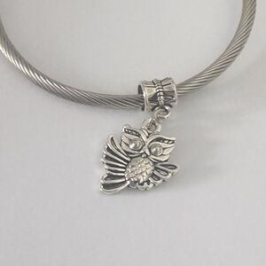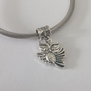 Silver Owl Dangle Charm for Pandora Style Bracelet