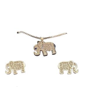 Silver Plate Cubic Zirconia Elephant Necklace and Earring Set