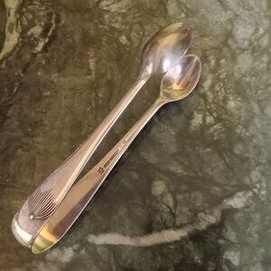 Vintage...30s...Collectible...English Silver-Plated Spooned Sugar Tongs....5"long X 1"wide...maker mark "Elkington & Co."...made in Elkington, England...pre-loved... in good condition.
