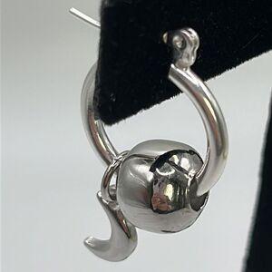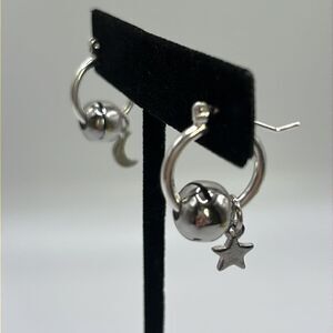 Silver-Plated Tiny Hoop Earrings with Silver-Tone Beads and Moon & Star Charms