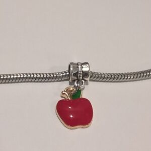 Silver Red Apple Enamel Dangle Charm for Pandora Style Bracelet