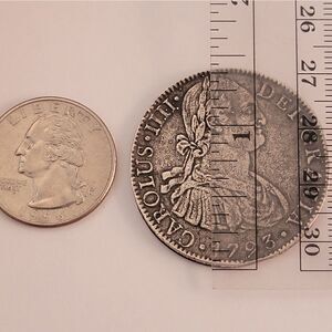 Silver Replica 1793 Spanish 8 Reale replica coin. Tested as sterling silver.