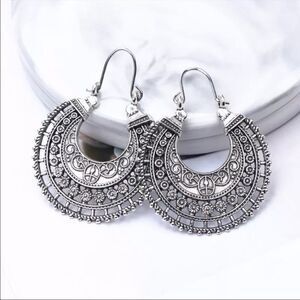 Antique Silver Plated India Style Boho Filigree Earrings