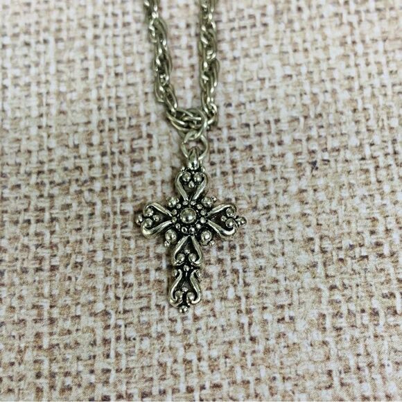 Silver Scroll Work Cross Necklace