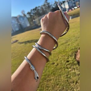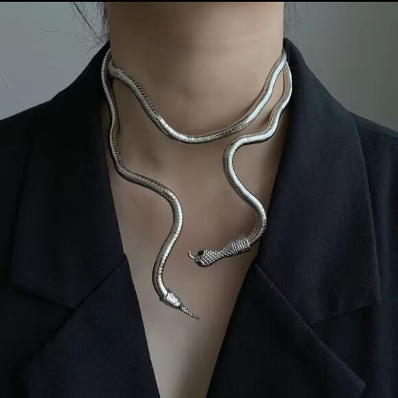 Add a touch of exotic charm with this stunning Serpenti-inspired silver snake necklace! This unique and flexible piece can be worn both as a striking choker necklace or wrapped as a bold bracelet. Perfect for those who love multifunctional accessories that make a statement.