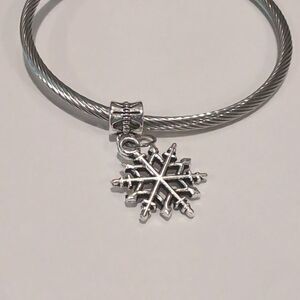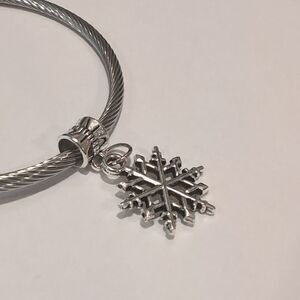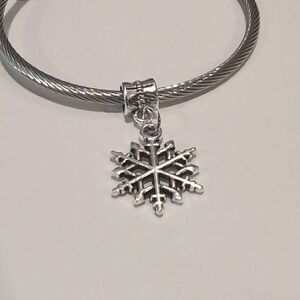 Silver Snowflake Dangle Charm for Pandora Style Bracelet