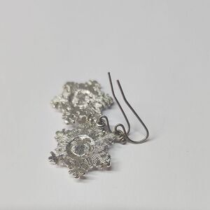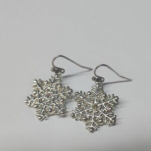 Elegant silver snowflake earrings perfect for any occasion. Add a touch of winter charm to your outfit.