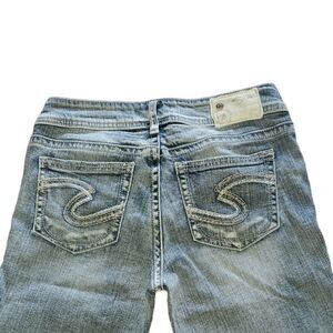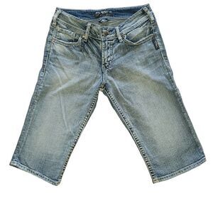 Silver Suki Bermuda Denim Jean Shorts Medium Wash Factory Fading Distressed 27