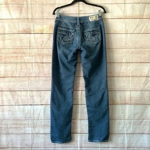 Silver Suki Mid Straight Joga Jeans Women’s Size W26/L32 Blue Distressed Hem