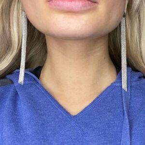 Silver Tassel earrings with silver bar and dangling chain link tassels.