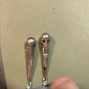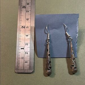Elegant silver teardrop dangle earrings with intricate cut-out design. Taken from a broken necklace and made new. G222