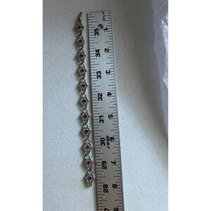 Silver-Tone Avon Floral Link Bracelet With Pink Rhinestones