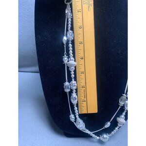 This elegant silver-tone necklace features a multi-strand design, embellished with a variety of textured beads, adding sophistication to any ensemble. The 36-inch length creates a graceful look, perfect for both formal and casual settings.